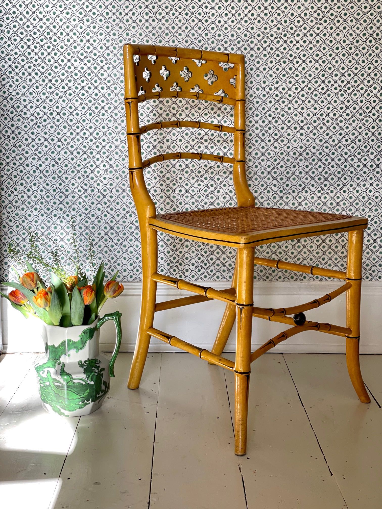 Antique Regency Style Yellow Faux Bamboo Chair – SOLD