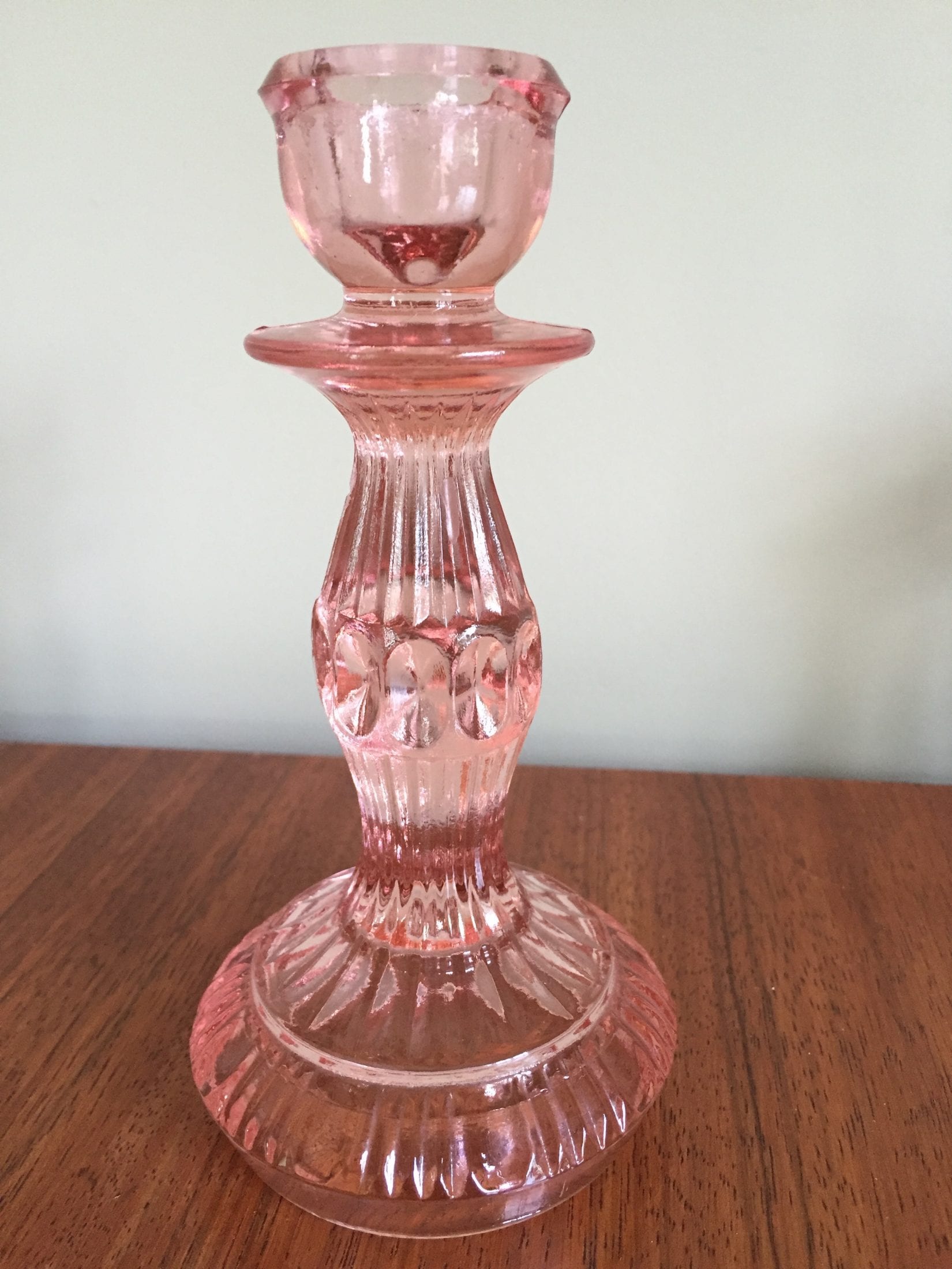 A beautiful pair of Art Deco rose pink glass candlesticks