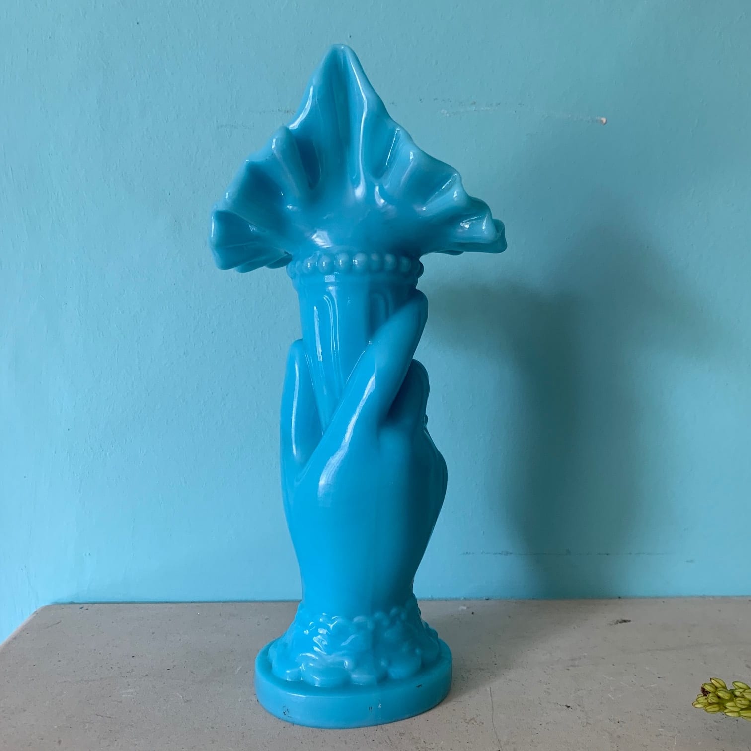 Beautiful Hollywood Regency Turquoise Milk Glass Vase – Sold