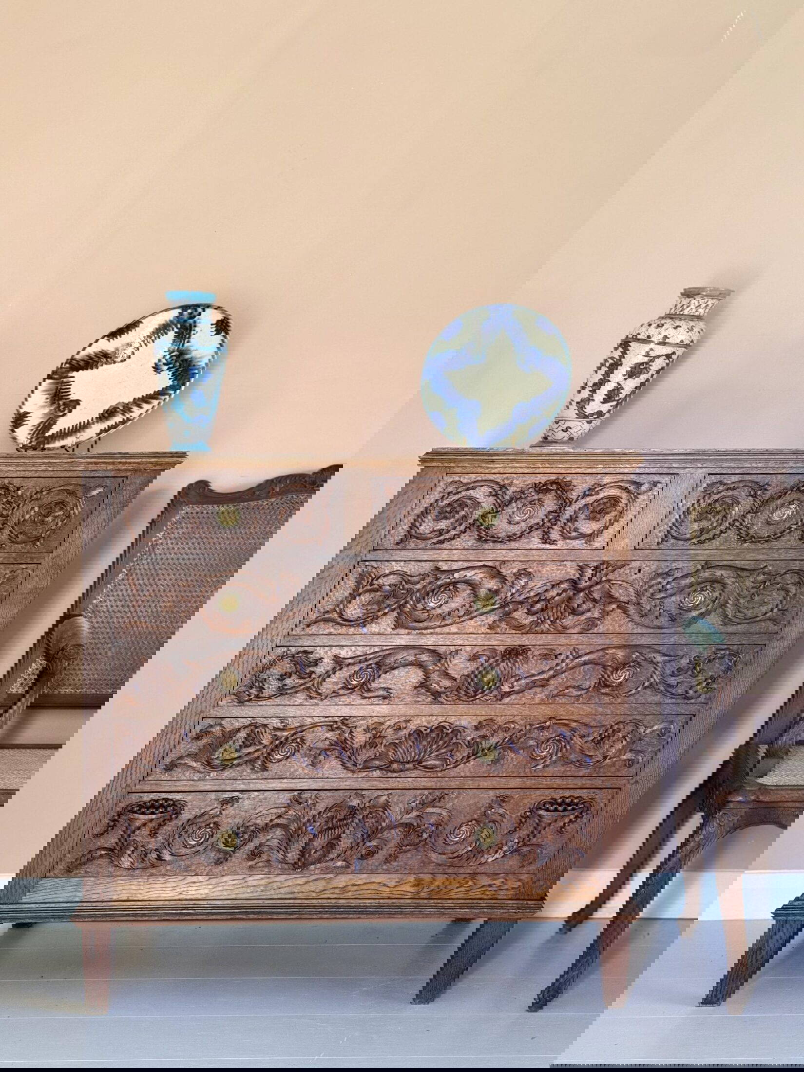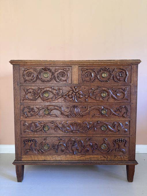 An absolutely stunning example of an English oak Arts & Crafts 6 drawer chest of drawers with original handles and dovetail mortise & tenon joint.