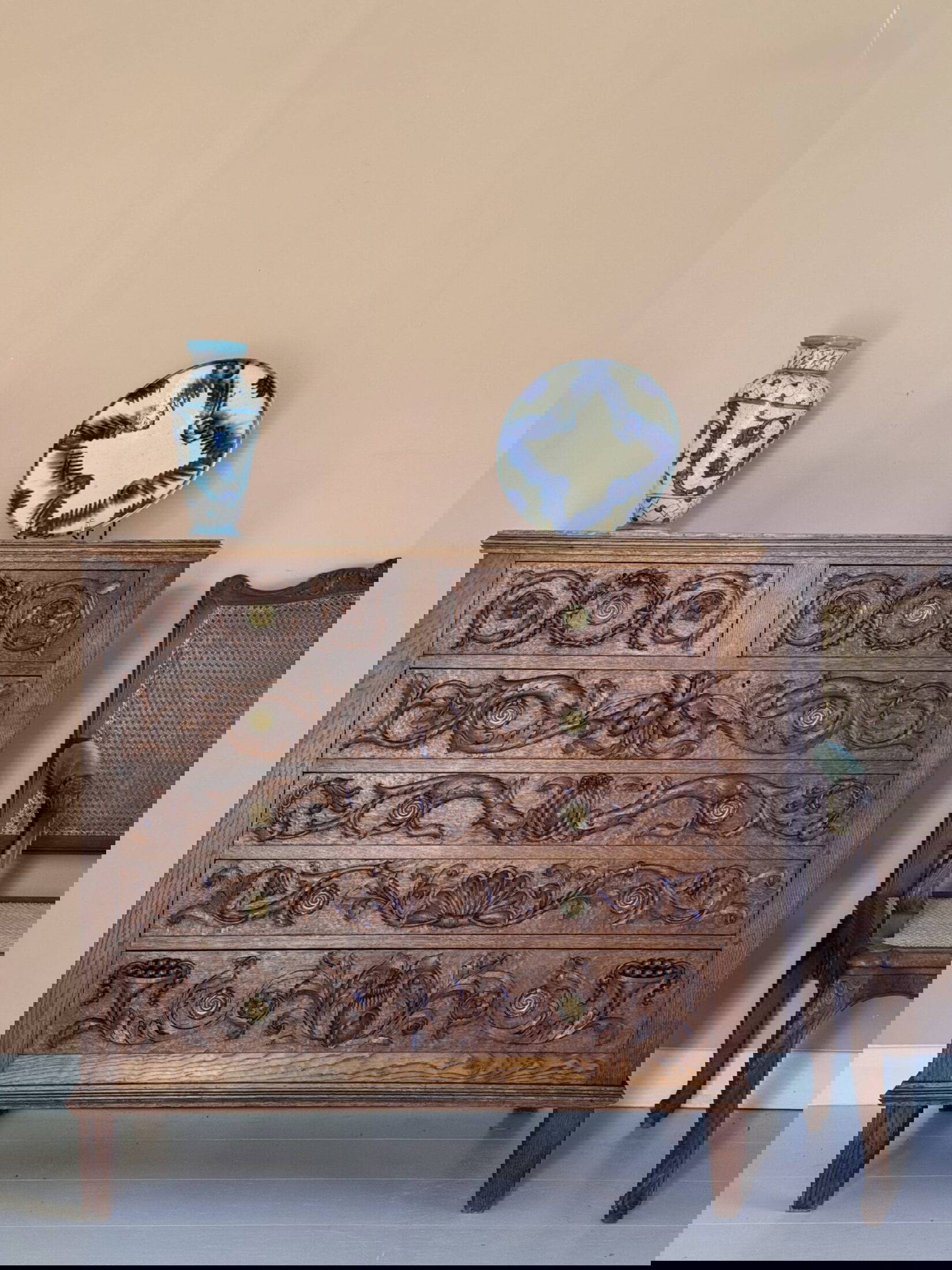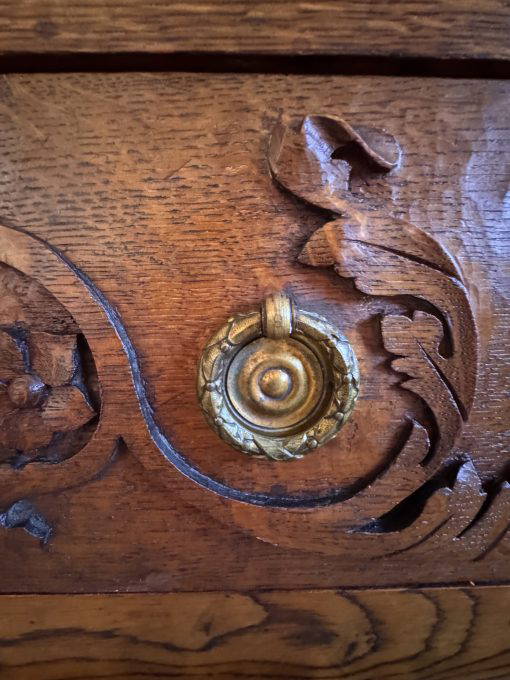 This is superb. Beautifully hand carved, with decorative oak leaves, acorns, pomegranates, conch shells and clam shells, bulls, family crests, dolphins and florals, all representing fertility, long life, purity.